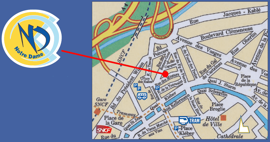 Au cœur de Strasbourg, Notre Dame est très facilement accessible, proche des réseaux tram et bus.